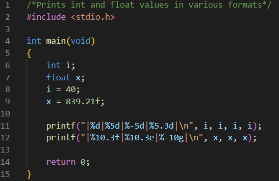 다양한 형식을 이용해 정수와 실수를 출력하는 프로그램.