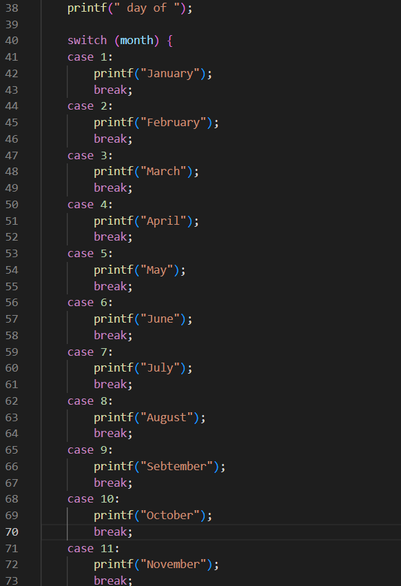 switch라는 단어 다음엔 반드시 괄호로 둘러싸인 정수 표현식이 나와야 함.