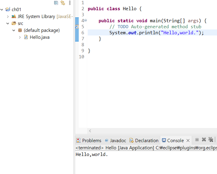 콘솔창에서 Hello,world가 잘 출력된 것을 볼 수 있음.