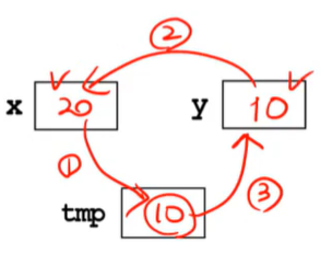 tmp = x; // 1. x의 값을 tmp에 저장