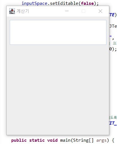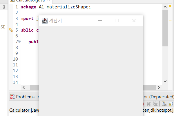 위와 같이 '계산기'라고 적힌 빈 창이 생성됨. 모양 구현 성공.