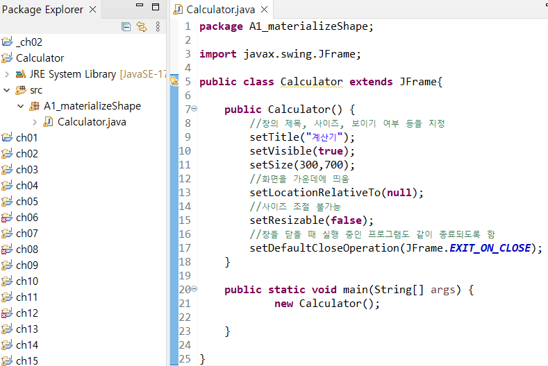 참고글에 나온대로 코드를 작성했음. 그 과정에서 A1 패키지 밑으로 Calculator 프로그램 넣음.