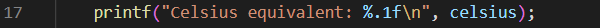 그 뒤에 오는 17번째 코드인 printf 함수 호출은 섭씨 온도를 출력한다.