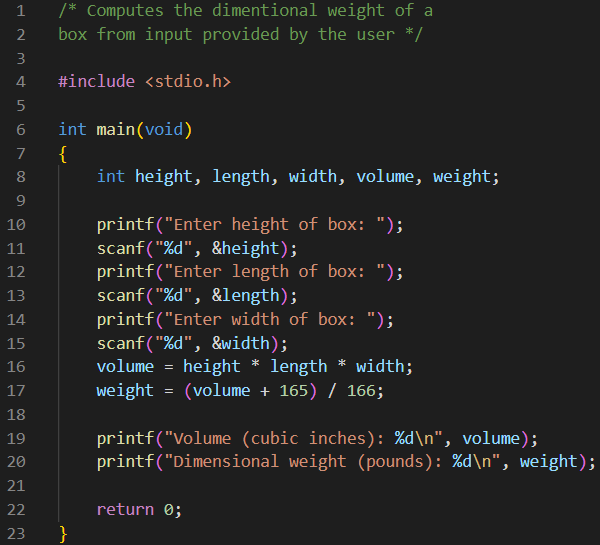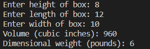 Program: Computing the Dimentional Weight of a Box (Revisited)