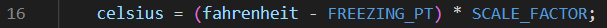 FREEZING_PT가 32.0f 이고, SCALE_FACTOR가 (5.0f / 9.0f) 이기에, 컴파일러에게는 아래와 같다.
